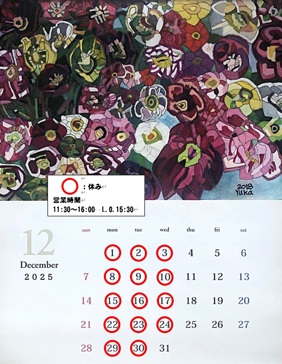 【定休日】毎週月、火、水曜日